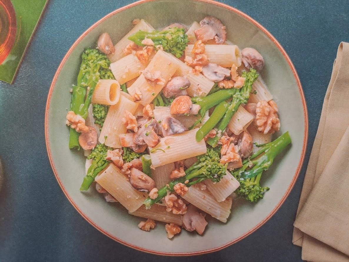 Creamy Truffle and Mushroom Rigatoni with Tenderstem Broccoli and Walnuts Pasta