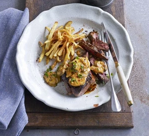 Venison steaks with stroganoff sauce & shoestring fries Venison